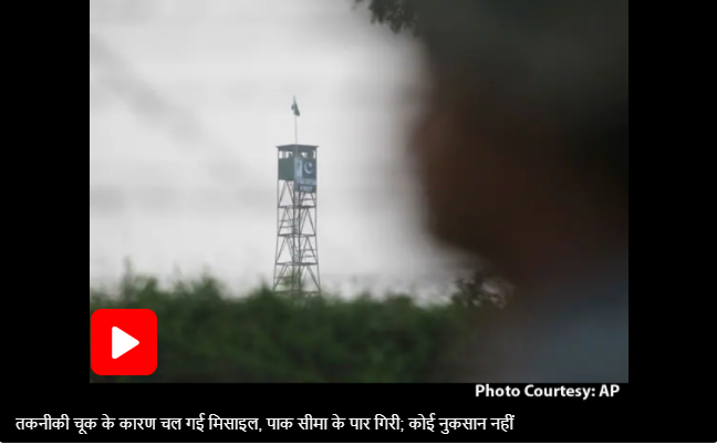 रक्षा मंत्रालय ने पाक में मिसाइल गिरने पर दिया जवाब : "तकनीकी खामी के कारण हुआ हादसा, जताया खेद